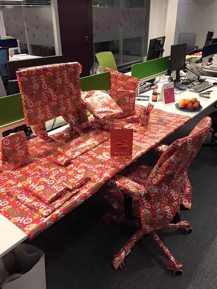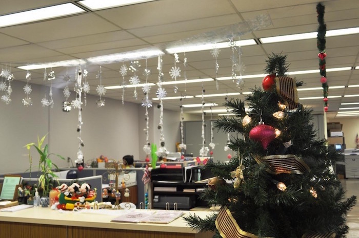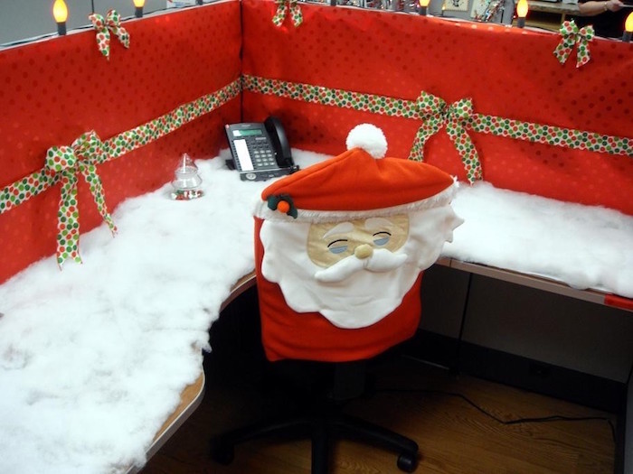 Simple, yet elegant is the décor above. Hang red and white combination Christmas décor and make your office get into the mood of celebration.