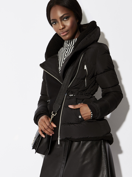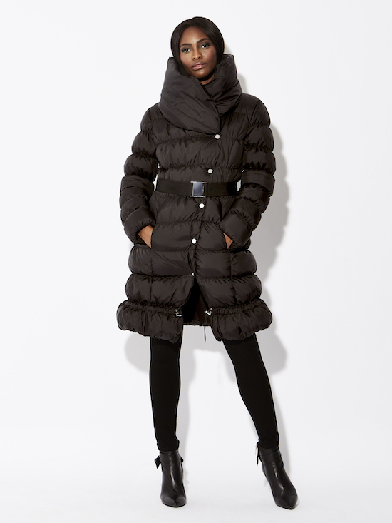 Lightweight feather padding with dramatic collar and waist-defining belt will surely keep you survive through this winter. Wear it with black skinnies and sleek leather boots.