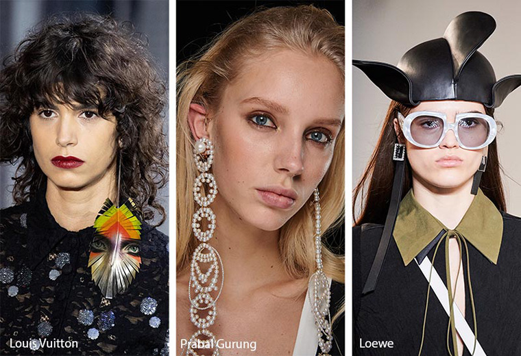 Nhà mốt Prabal Gurung gây dấu ấn với bông tai ngọc trai dài đính tua rua chạm đến… khuỷu tay. Trong khi đó, mặc dù hầu hết các phụ kiện của Louis Vuitton không quá “đồ sộ” nhưng không thể không nhắc đến một vài loại bông tai lông vũ dài đến tận vai, tạo điểm nhấn đặc sắc cho bộ trang phục.