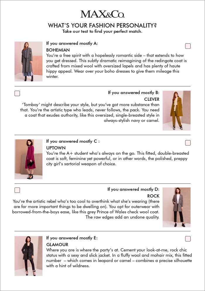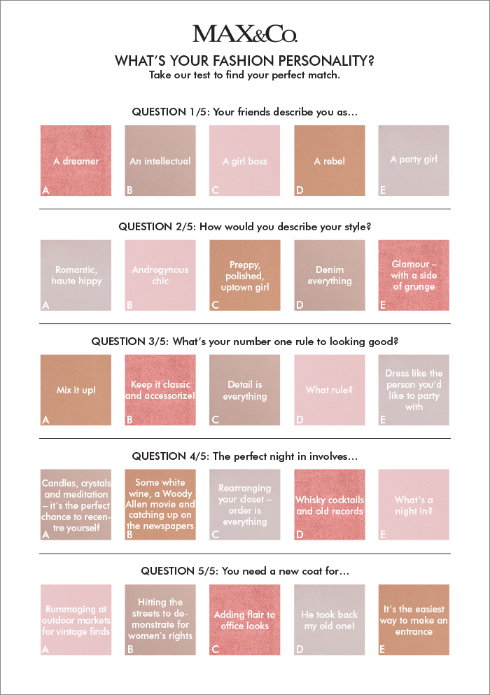 Let’s take MAX&Co.’s test to find out your perfect match.