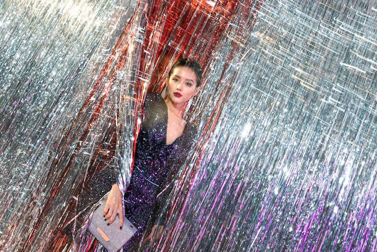 Besides red, hot pink is also the festive hue. These colors combine with sparkle sequins will make you outstanding from others at the party. Plain and simple accessories such as clutch and boots are perfect mix-match.