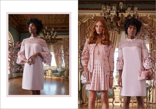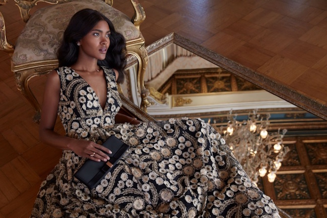 When it comes to accessories, pearls continue their reign, while signature prints from the collection are also translated into bags and footwear to complete the co-ordinated dressing message. Key handbag styles are updated with textured, embossed bowdetail hardware while evening bags are crafted from sumptuous leather with an oversize bow detail that’s designed to make a grandiose statement.