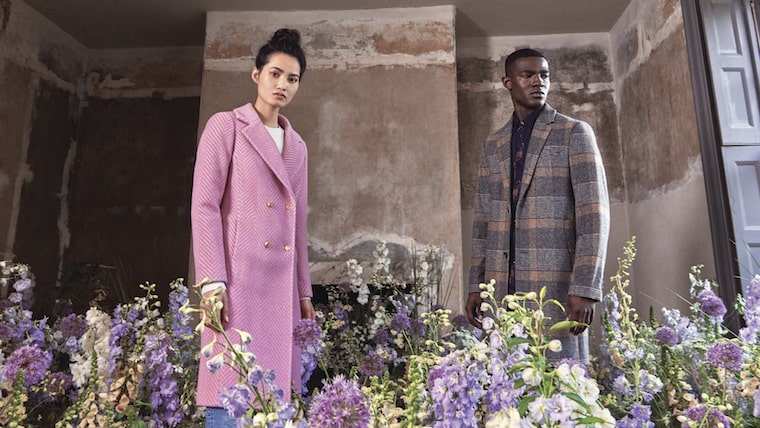 With daily wearability at the forefront of Ted’s thinking, a versatile core palette of navy, khaki, grey and camel lays the foundations, boosted with accents of pink and egg yolk yellow.
