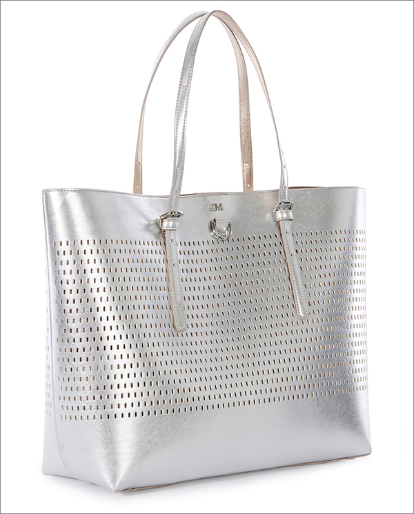 Chiếc túi xách trở nên sang trọng hơn bởi thiết kế đục lỗ và màu sắc kim loại. Lớp màu sơn bóng hiện đại phù hợp với những dịp cuối tuần và kỳ nghỉ. Thân túi rộng cho phép bạn mang theo nhiều vật dụng. Điểm cộng của chiếc túi chính là thiết kế quai xách linh hoạt có thể tháo rời cùng khóa kéo chắc chắn.