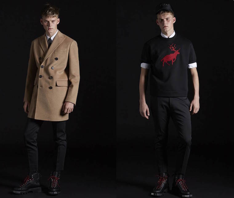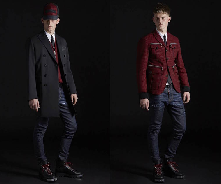 Bộ sưu tập thời trang nam Thu Đông 2017 Dsquared2 với phong cách chỉn chu, thời thượng qua các thiết kế suit và áo khoác được may đo tinh xảo, trên chất liệu vải cao cấp, bên cạnh những chi tiết trang trí dọc phần tay áo cá tính, bắt mắt. Bên cạnh đó, sự kết hợp giữa denim và da, quần tây, áo khoác nút đôi, áo sơ mi họa tiết cũng là những điểm nhấn đắt giá của bộ sưu tập lần này.