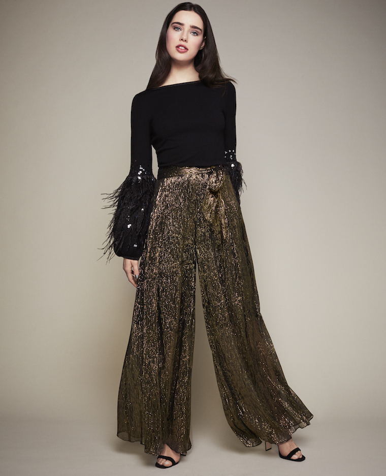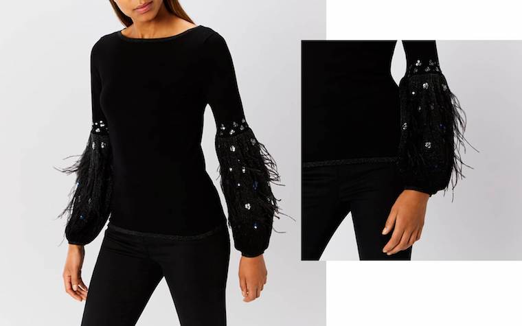 Áo len luôn là món đồ không thể thiếu của mùa cuối năm. Mẫu thiết kế mới của Coast sở hữu tay áo phồng xòe ấn tượng với chi tiết đính lông vũ và sequin lấp lánh, một kết hợp tuyệt vời khi mặc cùng quần jean màu đen.