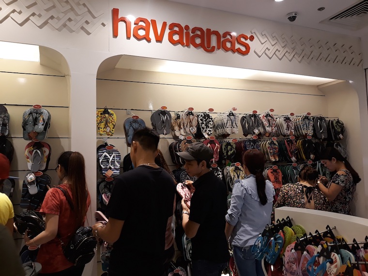 Thương hiệu dép tông được yêu thích nhất đến từ Brazil Havaianas cũng chật cứng khách mua sắm. Đối với đất nước miền nhiệt đới như Việt Nam, thì Havaianas là một ‘tuyên ngôn’ thời trang sành điệu, đậm chất hội hè bất tận.