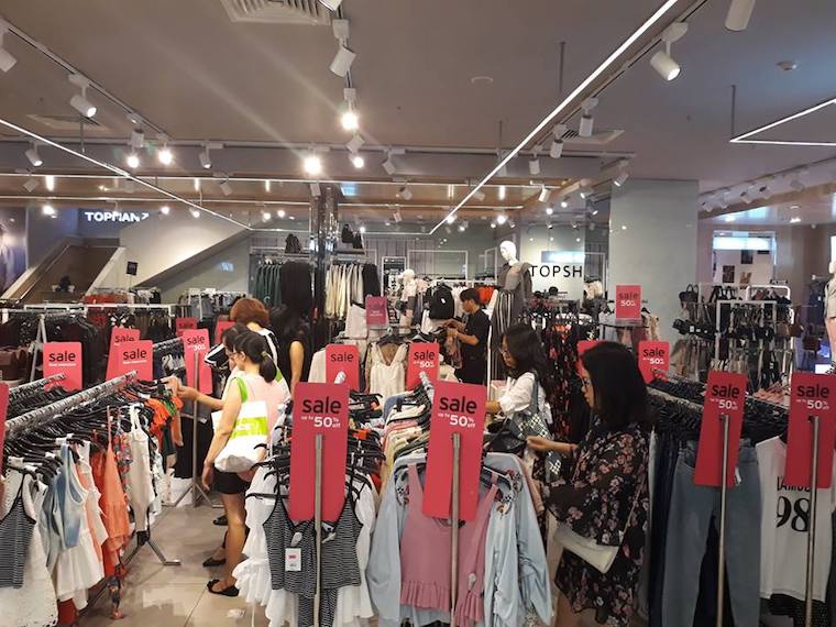 Một màu đỏ đính tag sale phủ ngập tràn cửa hàng Topshop Topman với giá chỉ từ 300,000đ trở lên, khiến các nam thanh nữ tú thành thị không thể rời mắt.