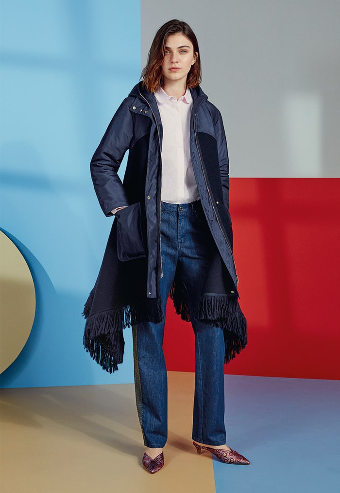 If your style is so boho, then you’ll love the sper comfy Blanket parka. Sartorial free spirits will love throwing this one over denim. Drawing on the wanderlust mood of the collection, the dark blue design has a bohemian-inspired fringe trim.